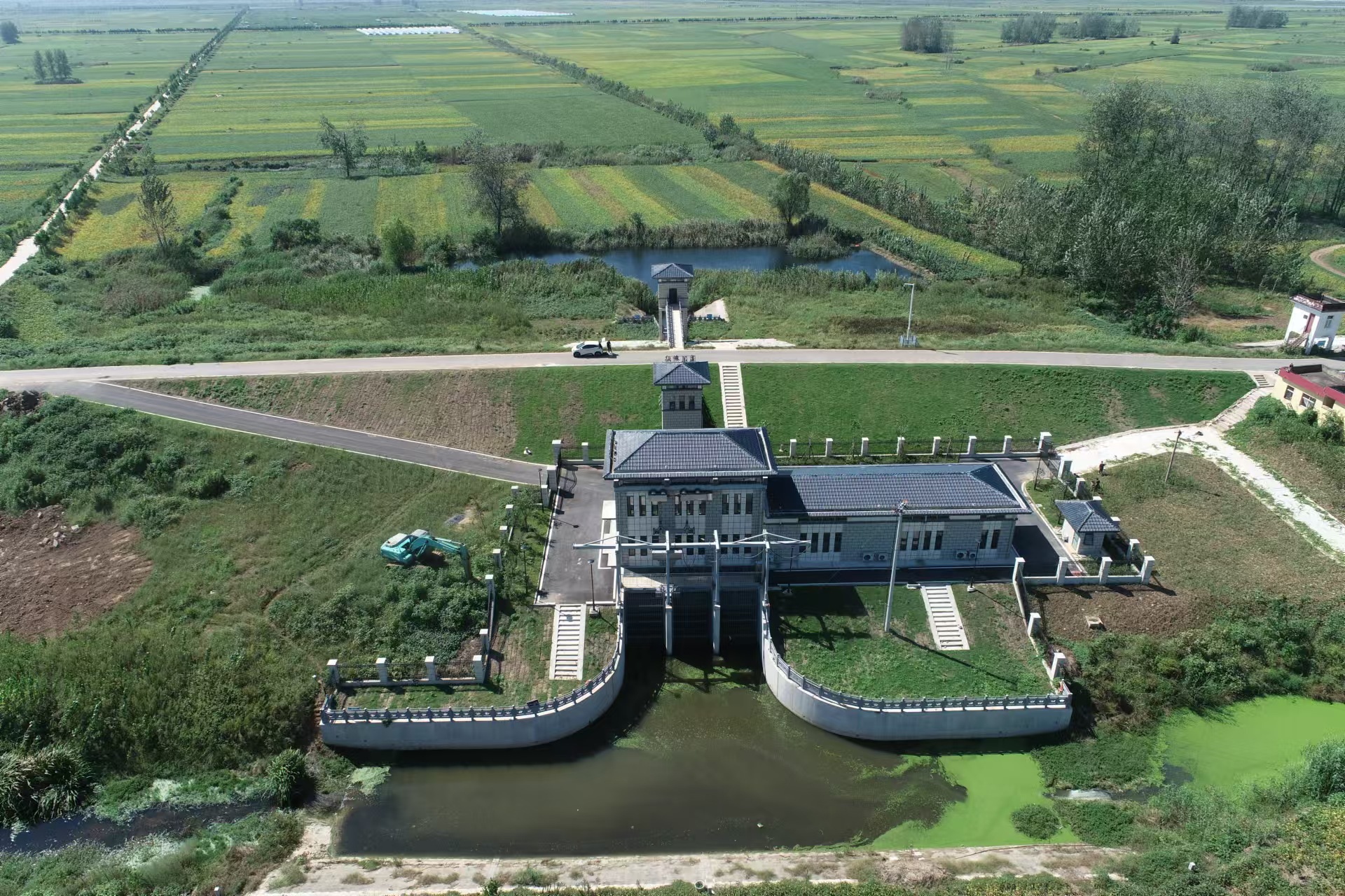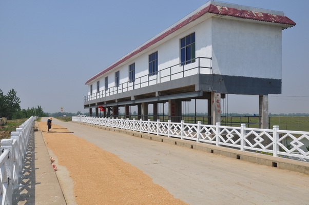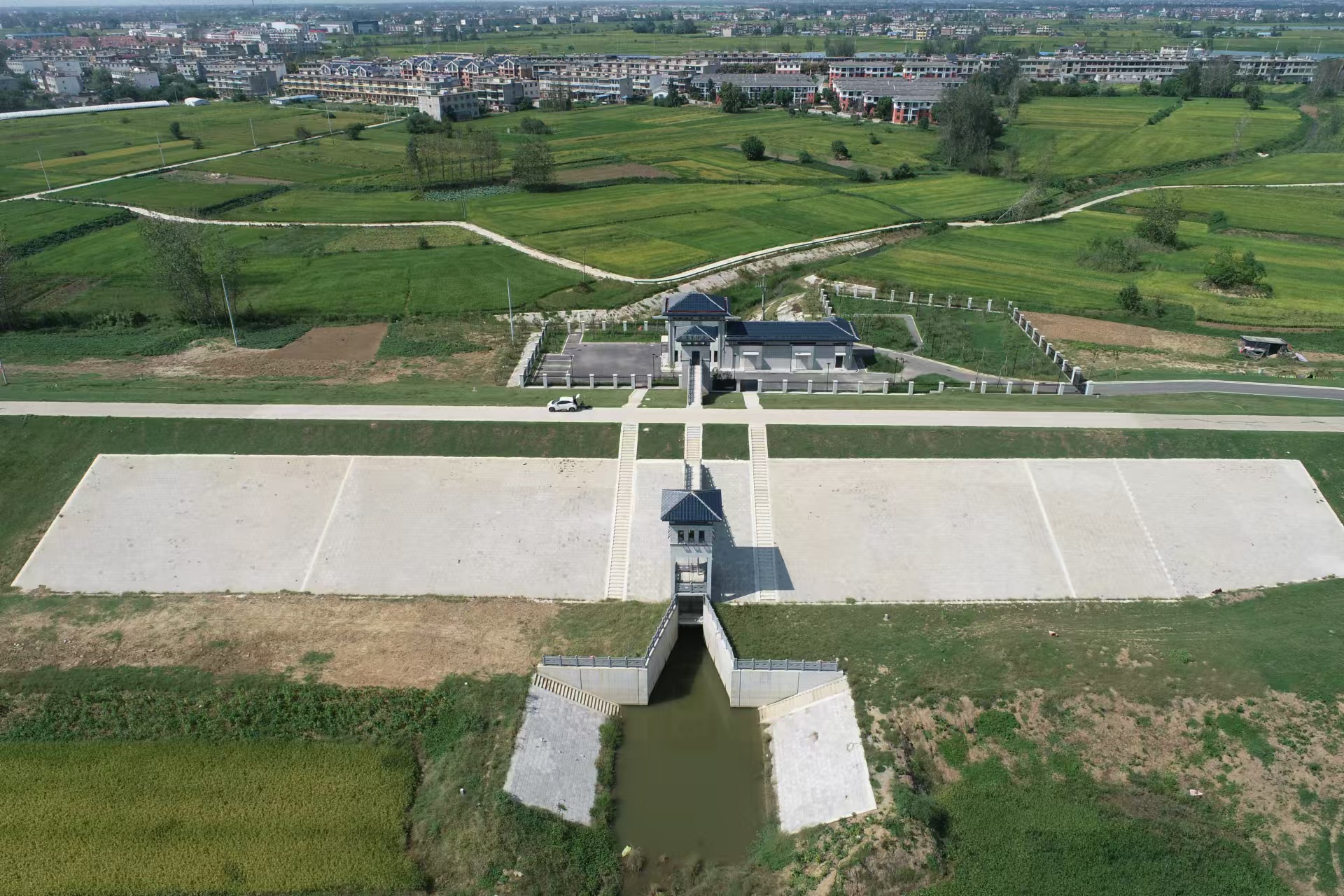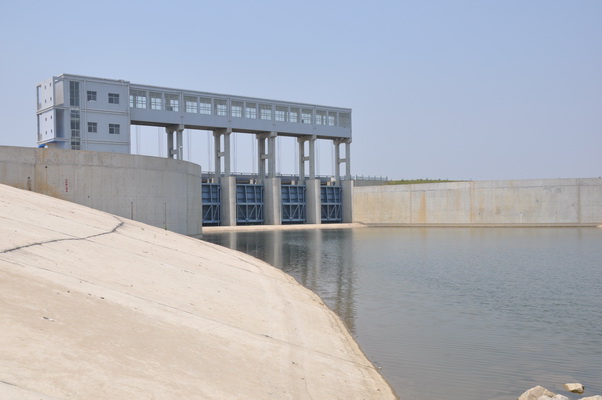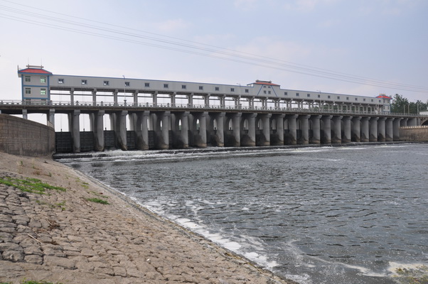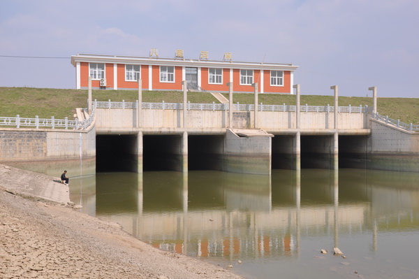 八里河閘  潁上縣八里河閘位于沙潁河潁右右堤,新建八里河閘為6孔涵洞,三孔一聯(lián)。控制流域面積483km2,5年一遇設(shè)計(jì)除澇流量264m3/s,垂直水流方向總