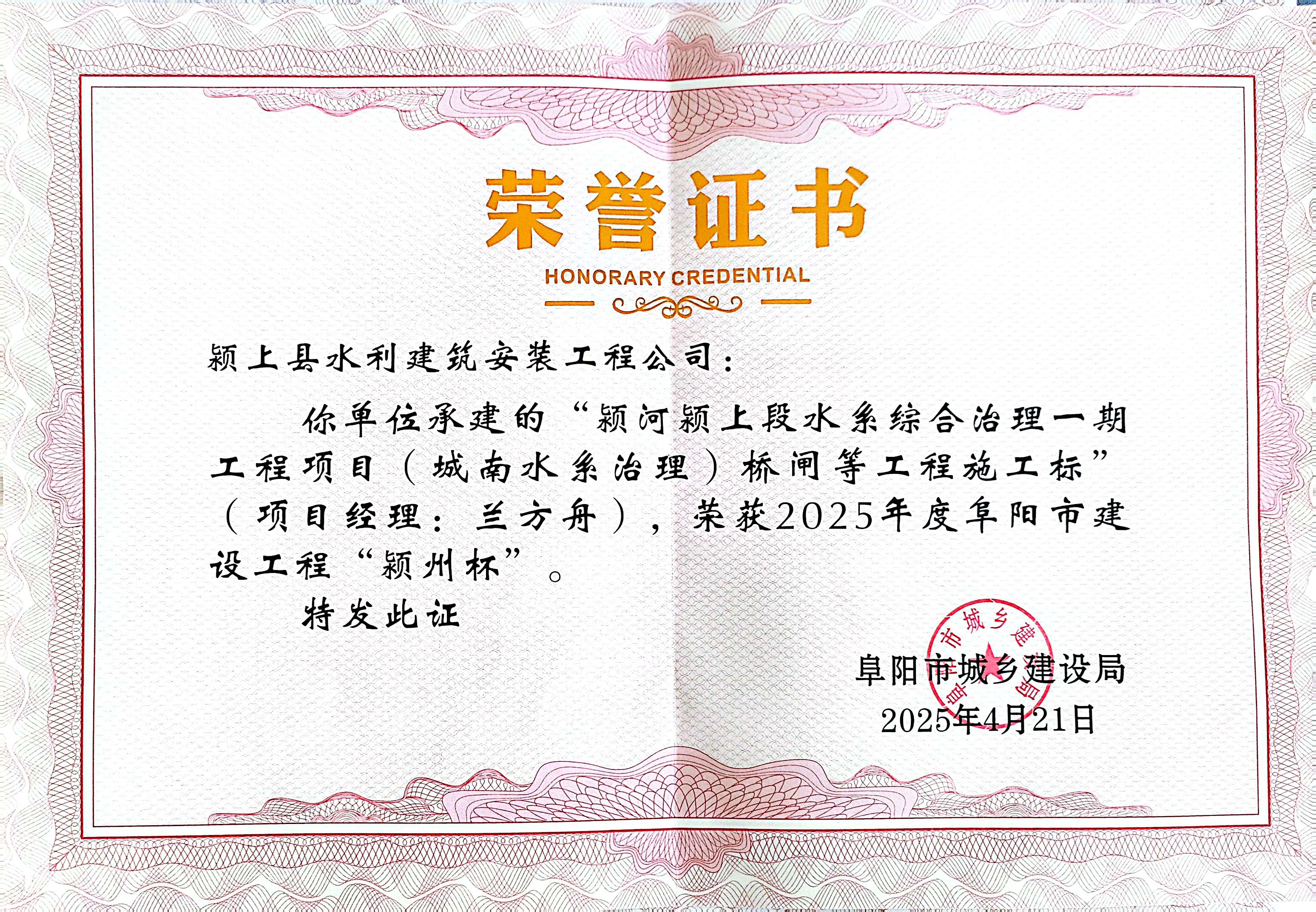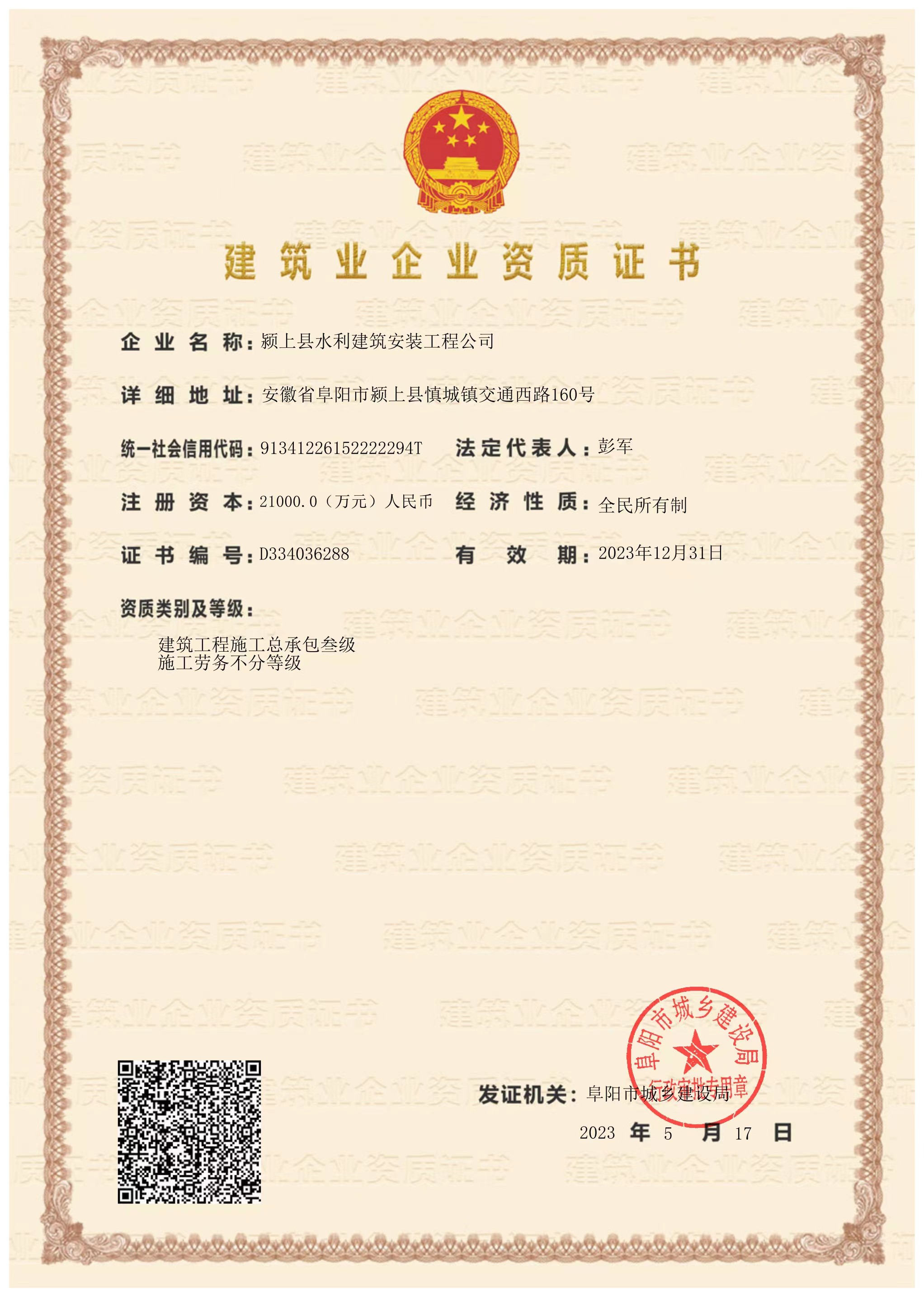 勞務(wù)資質(zhì) 阜陽(yáng)市建設(shè)工程"潁州杯" “守合同重信用”企業(yè)
